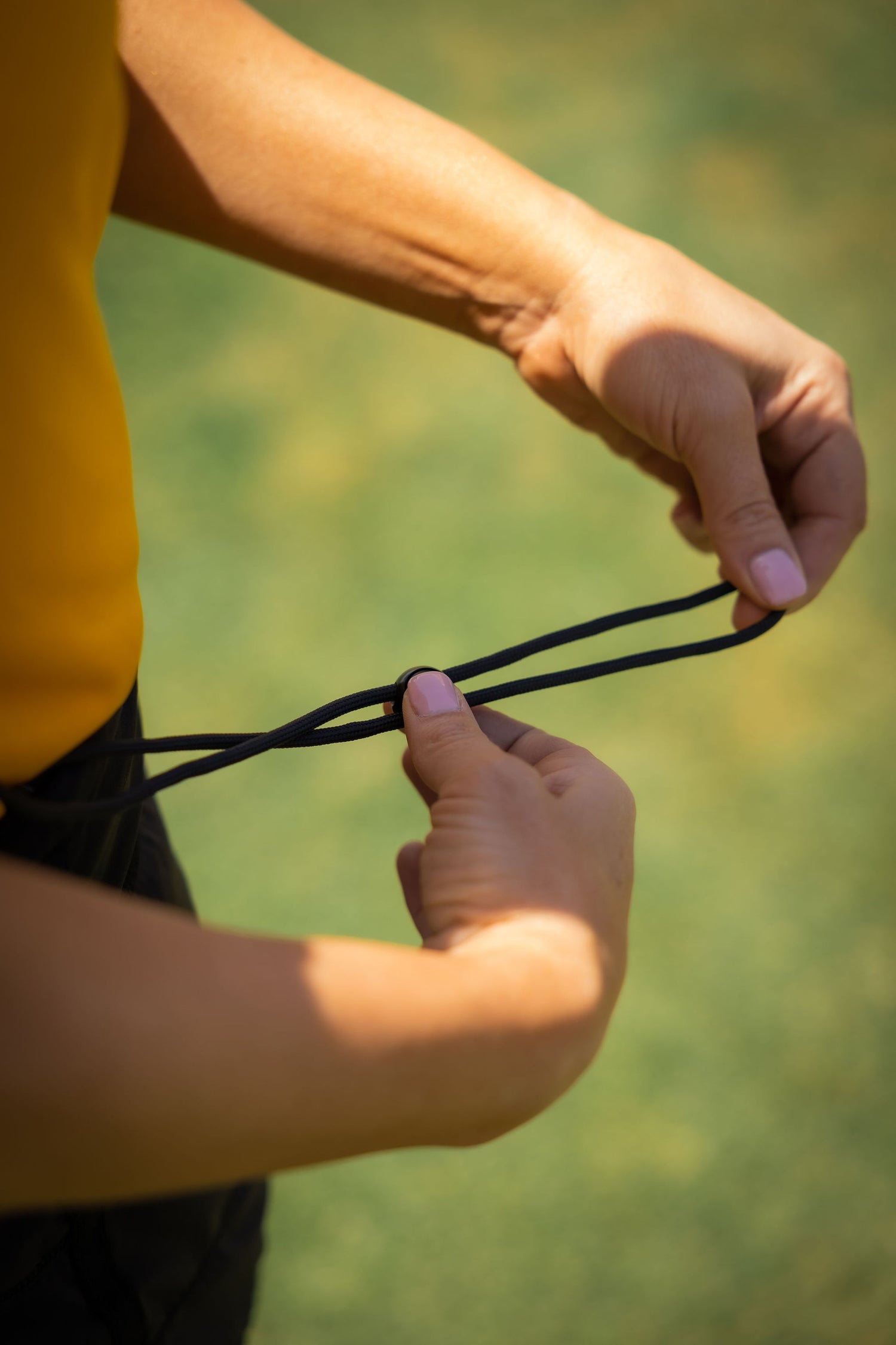 3. Using the cord lock, remove most of the slack in the paracord. Leave about 3 to 4 inches of slack.